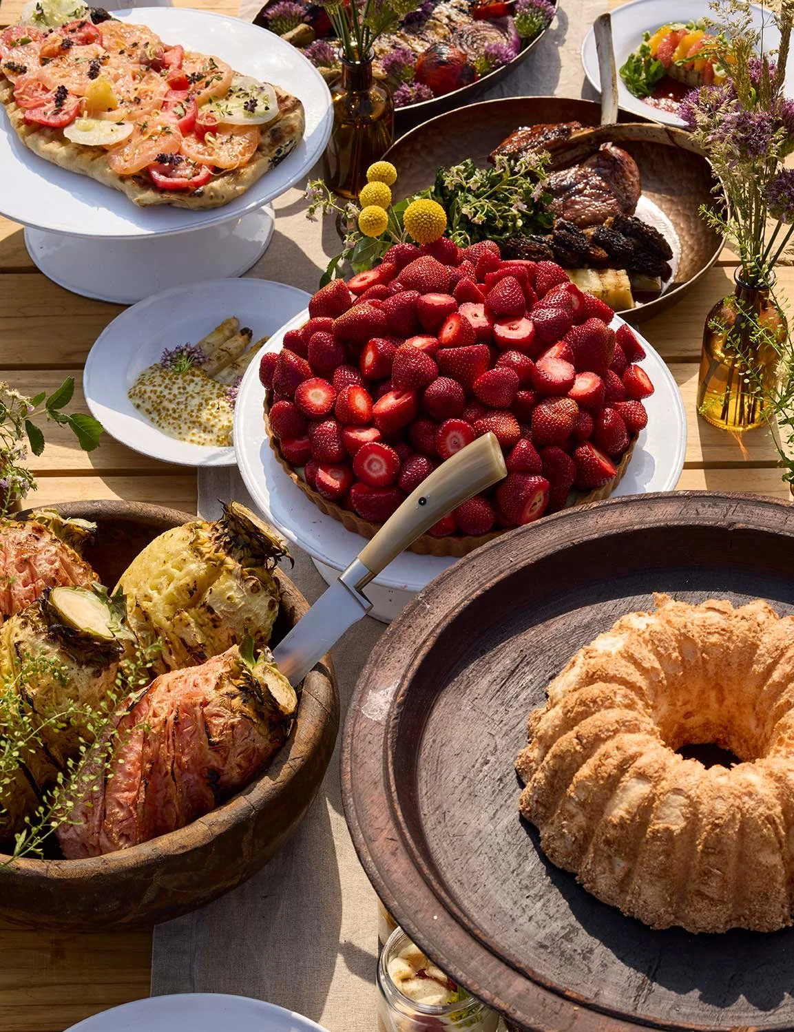 It is completed with horn silverware, vintage Italian enamelware, and other outdoor tabletop accessories.